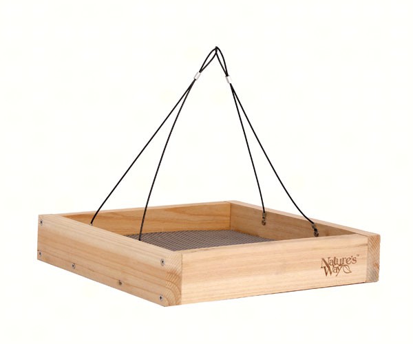 Hanging or Platform Tray feeders have extra spacing to accommodate large birds. It is made of insect and rot resistant premium cedar wood and the rust-free removable fresh seed tray lifts out easily for cleaning and allows water to drain. This feeder is made with stainless steel hardware, includes a vinyl coated steel hanging cable if you would prefer to use it as a hanging feeder, and is covered by Nature's Way Bird Products'exclusive 5 year warranty.