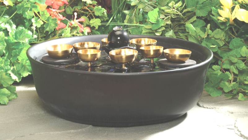 This musical fountain combines the gentle ringing of bells with the pleasant sound of moving water. The water current carries two brass bells around six stationery bells, creating the ultimate soothing remedy. Boxed for gift-giving.