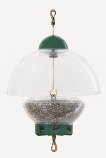 Big Top Bird Feeder - New Green Parts. Safety-lock hook- secures feeder Brass rod- dependable durability Rain guard with O ring- ensures dry seed Collet Technology- adjusts dome position on brass rod 15 diameter adjustable dome- protects seed from weather and thwarts large birds and squirrels.