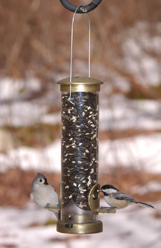 Aspects Quick-Clean Seed Tube Feeders combine heavy, die cast metal caps, ports, and bases with a clear, UV stabilized, polycarbonate tube to make these feeders an investment that lasts a lifetime. A built in seed deflector in the base allows birds to remove every last seed. Redesigned feed ports on the seed tube model have a raised ridge to divert rainwater and perches are part of the seed port. These new feeders feature a revolutionary, removable base. To remove the base just push two buttons and the base slides easily out! When a seed tray is attached to a feeder, simply remove the base for cleaning with the tray still attached. It is one easy step that makes cleaning your feeders a snap!