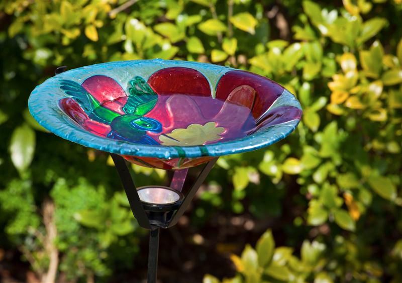 Glass Birdbath with Solar Stake