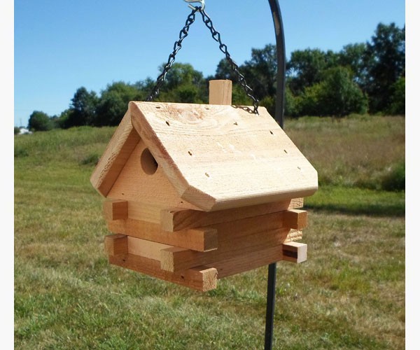 Red Cedar Log Cabin Wren Birdhouse